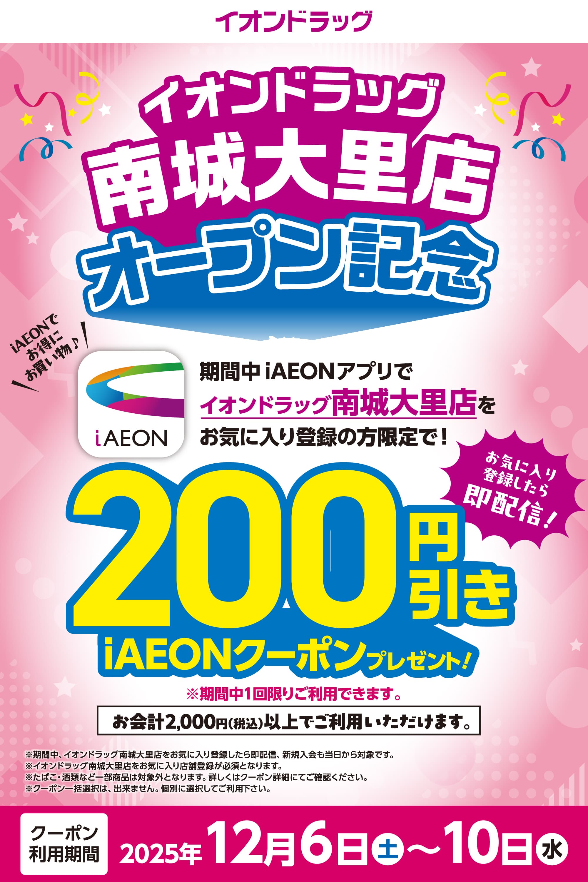 当クーポンは、イオンドラッグ南城大里店のみ利用可能となります。