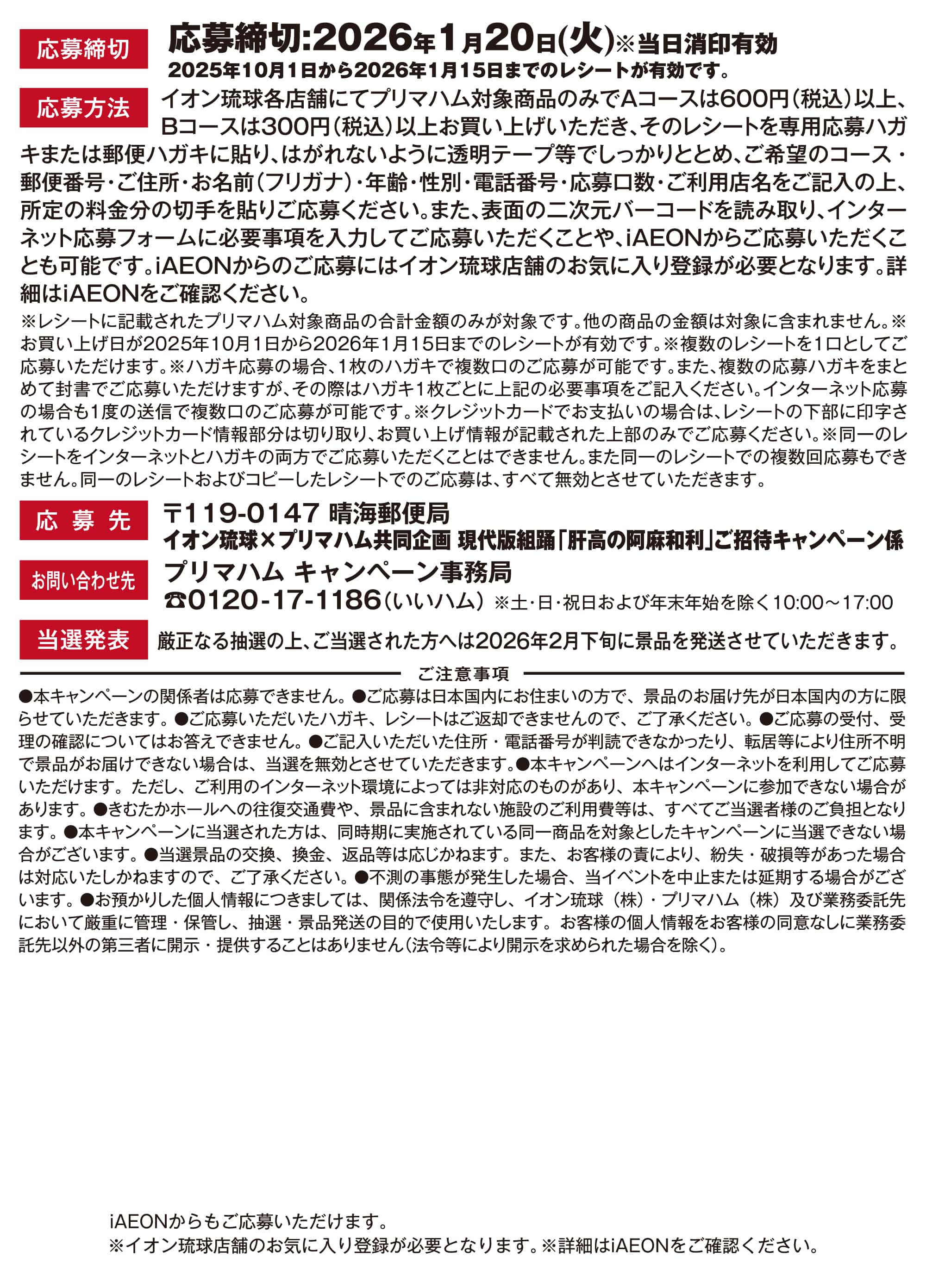 イオン琉球・プリマハム共同企画「肝高の阿麻和利」ご招待キャンペーン