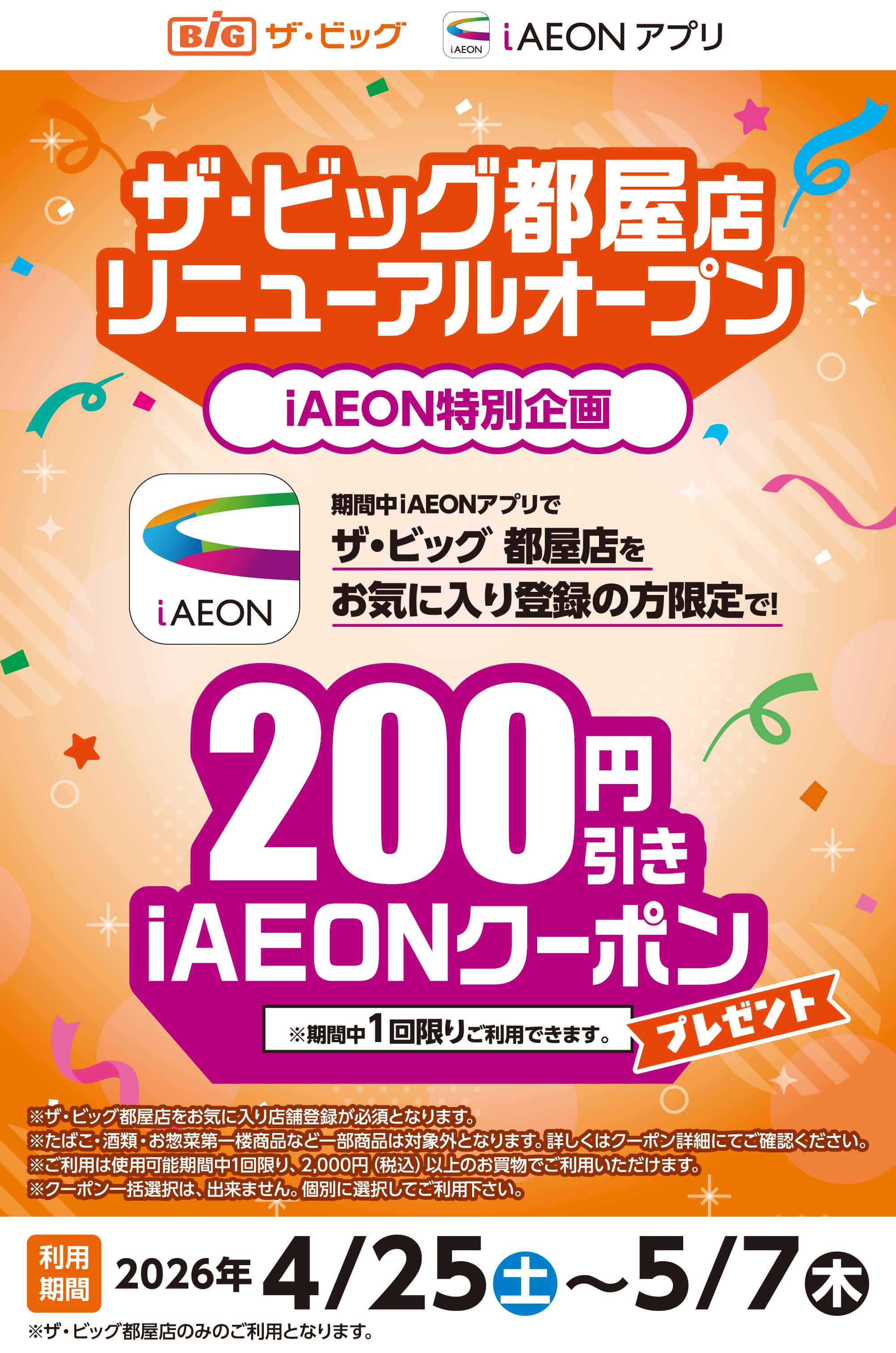 当クーポンは、ザ・ビッグ 都屋店のみ利用可能となります。