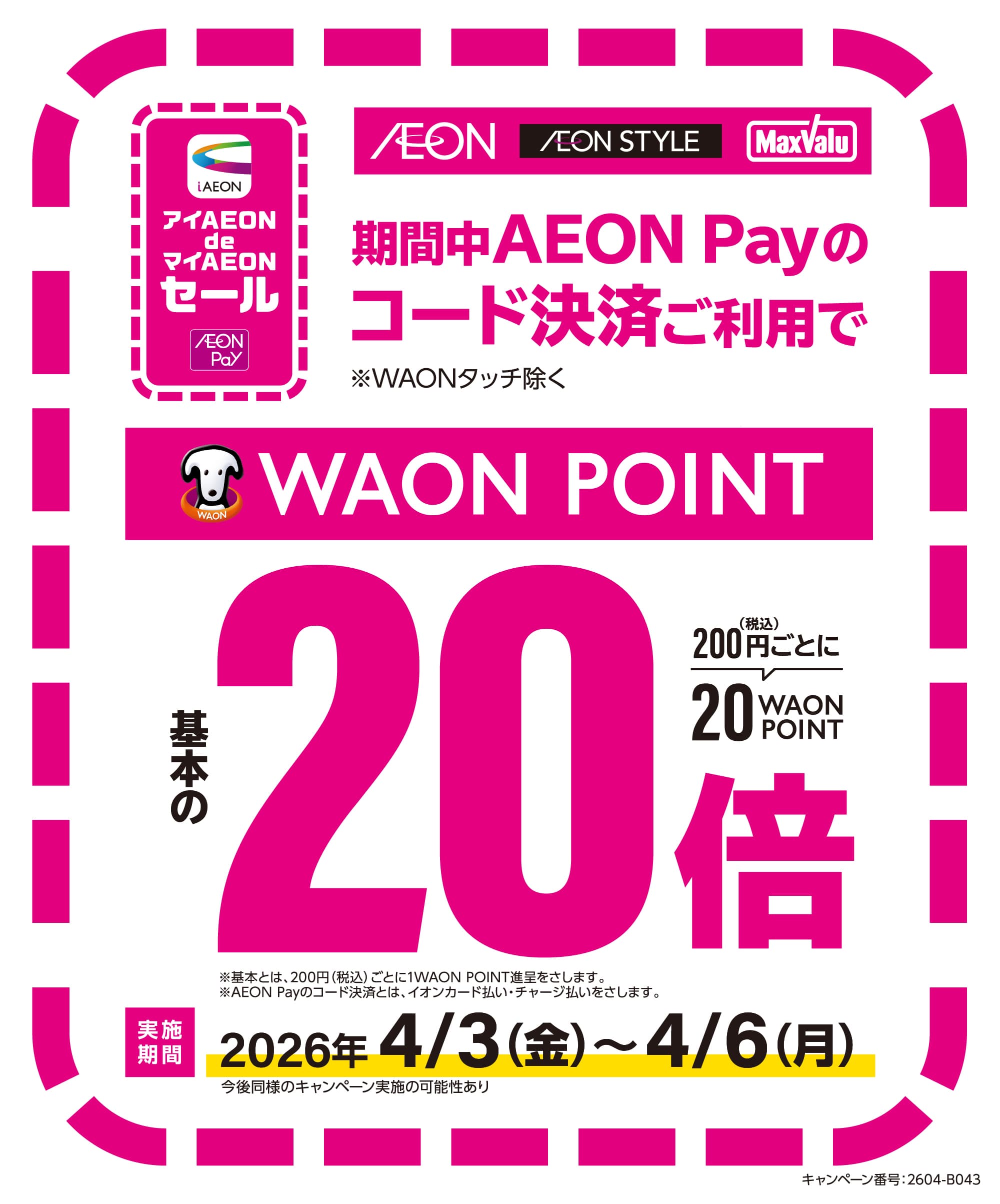 期間中AEON Payのコード決済ご利用でWAON POINT20倍